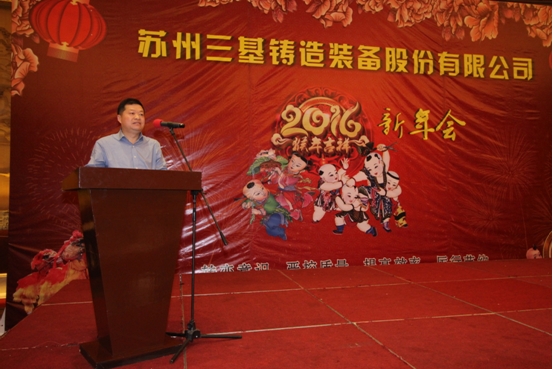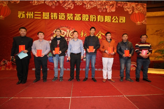 2016.2.3日晚,蘇州三基鑄造裝備股份有限公司在東山國賓館舉行了氣氛熱烈、情誼濃濃的2016新年會。新年會分為公司領(lǐng)導(dǎo)致辭、表彰先進(jìn)、員工宴會及抽獎活動幾個環(huán)節(jié)。