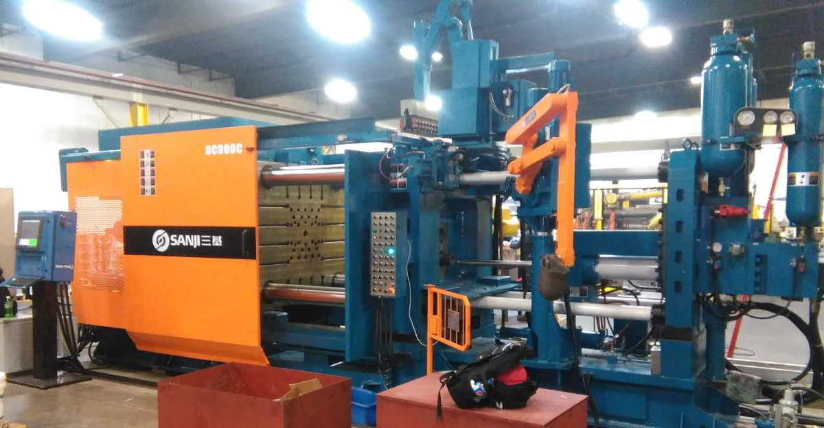 蘇州三基依照美國(guó)的UL認(rèn)證安全要求設(shè)計(jì)了歐美版臥式冷室壓鑄機(jī)系列產(chǎn)品,該產(chǎn)品在電氣控制系統(tǒng)、液壓油路、合模系統(tǒng)、機(jī)座系統(tǒng)等方面進(jìn)行了全新設(shè)計(jì),合模機(jī)構(gòu)的模板、曲肘系統(tǒng)全部采用鑄鋼件,大大提高了壓鑄機(jī)的整體剛性。其中900噸臥式冷室壓鑄機(jī)已于2016年10月份成功銷往美國(guó)市場(chǎng),該設(shè)備采用AB控制系統(tǒng)和美國(guó)VTW實(shí)時(shí)控制系統(tǒng),集成了給湯機(jī)、噴霧機(jī)、取件機(jī)器人、切邊機(jī)等自動(dòng)化設(shè)備,組建了一個(gè)自動(dòng)化壓鑄島,用于汽車零部件的自動(dòng)化生產(chǎn)。設(shè)備目前正處于安裝調(diào)試階段,將在2017年2月份正是達(dá)產(chǎn)。